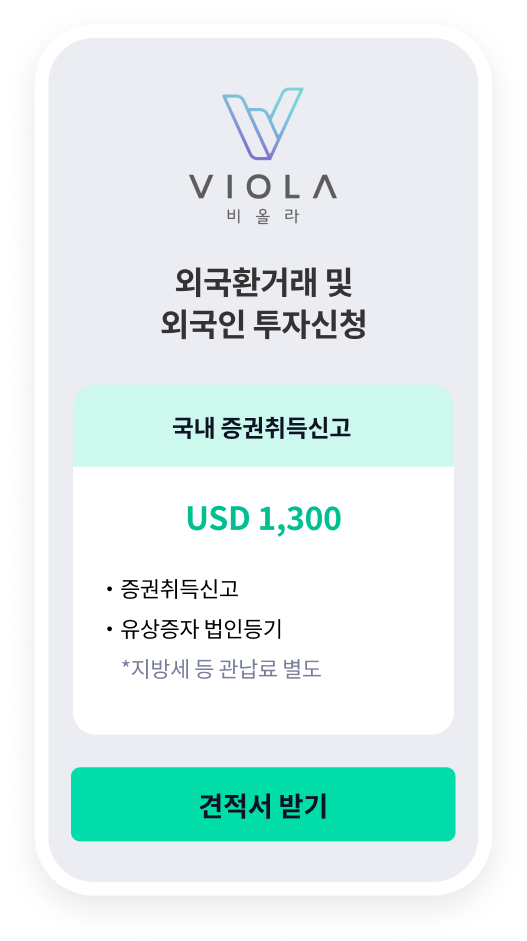 해외 직접투자, 해외 투자유치, 외국인과의 구주거래, SAFE 계약에 따른 투자, 외국법인 지점 설치등 이제 어렵지 않습니다. 비올라 변호사에게 맡기신다면 이 모든 신고를 신속 정확하게 처리하실 수 있습니다.